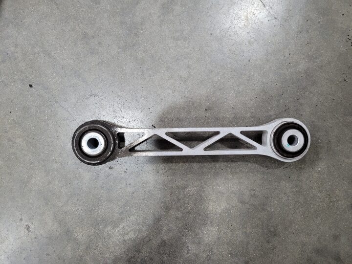 - Remove the nut and bolt that attach the LH rear toe link assembly to the knuckle (torque 130 Nm), and then remove the toe link assembly from the vehicle.