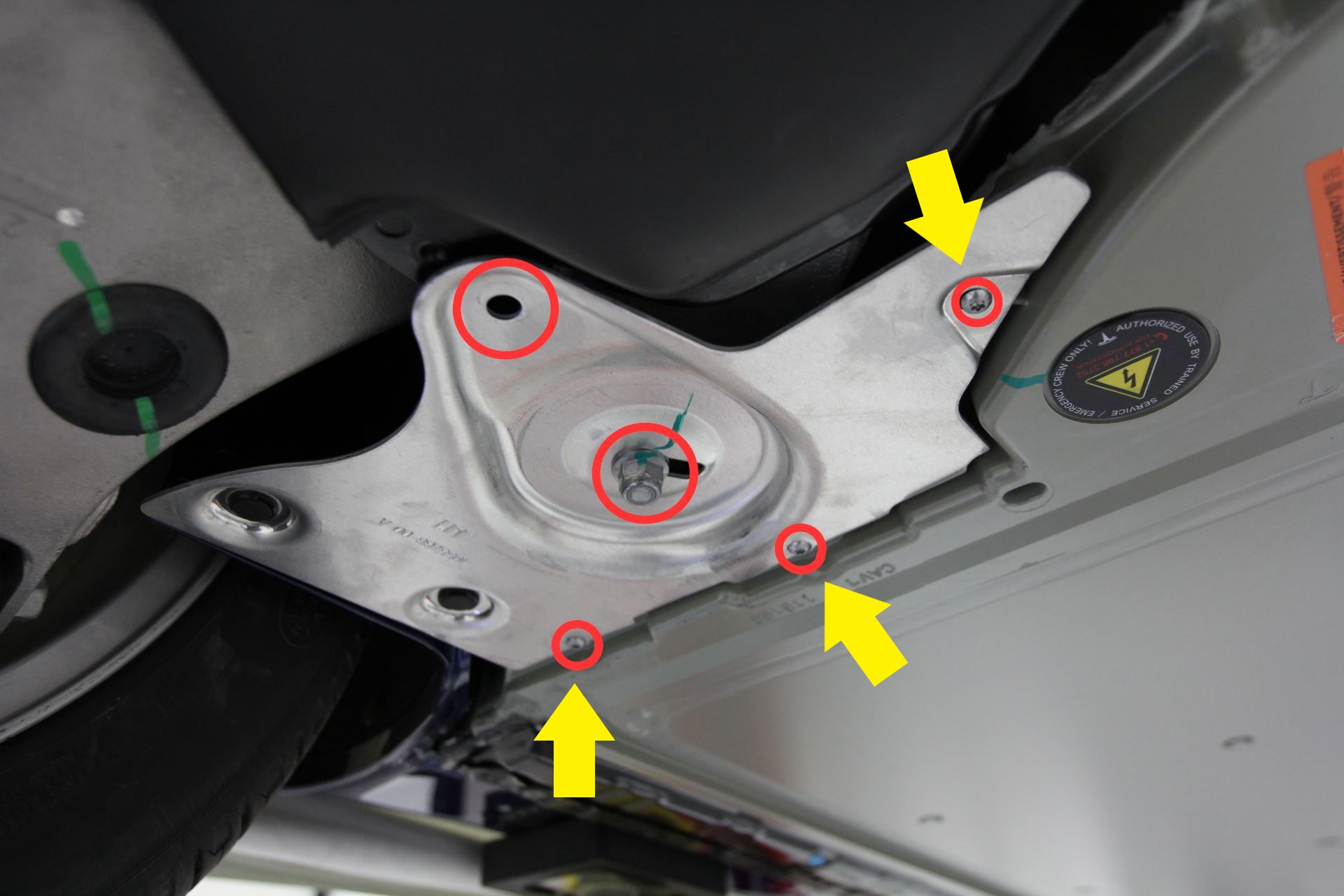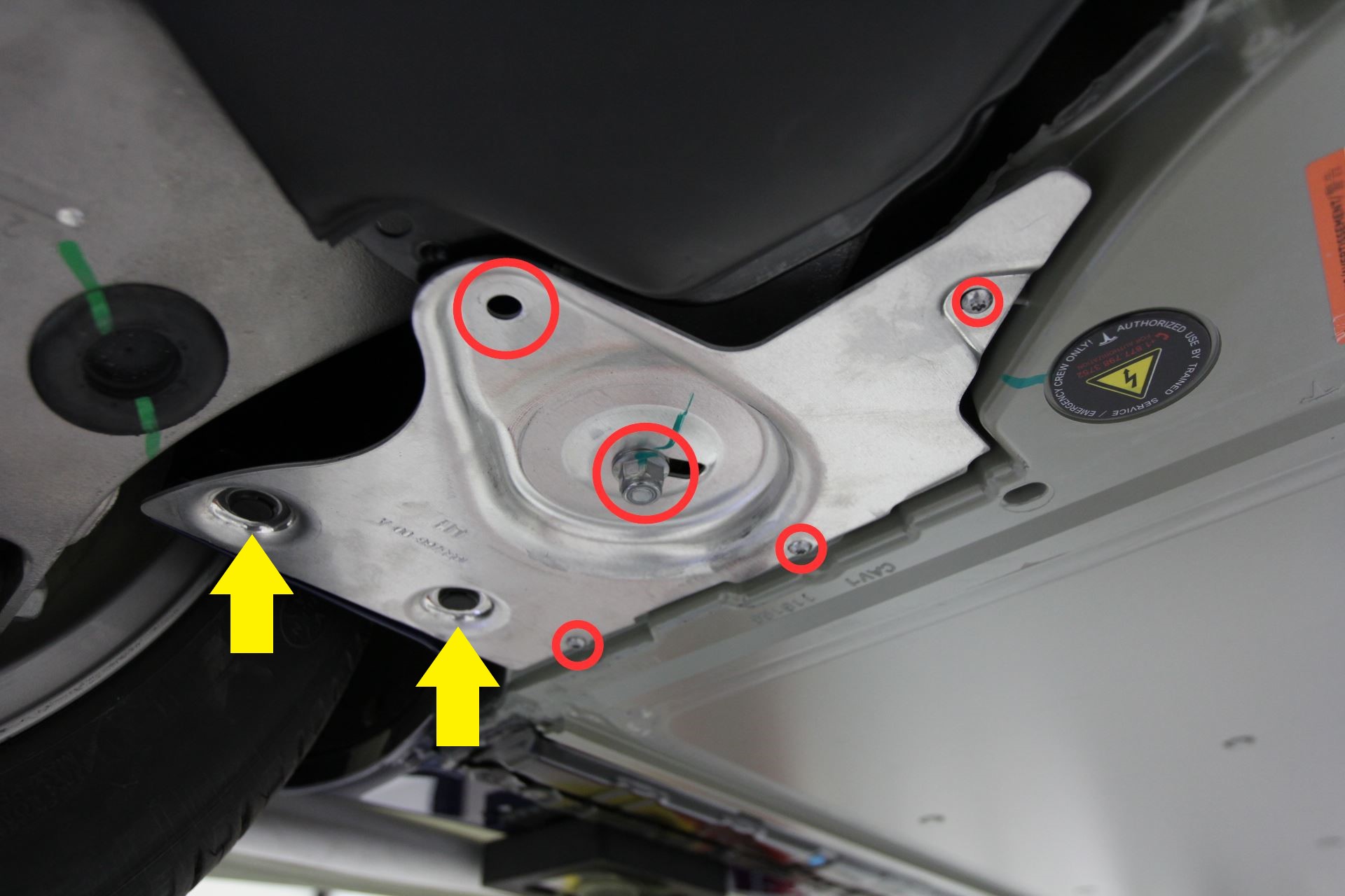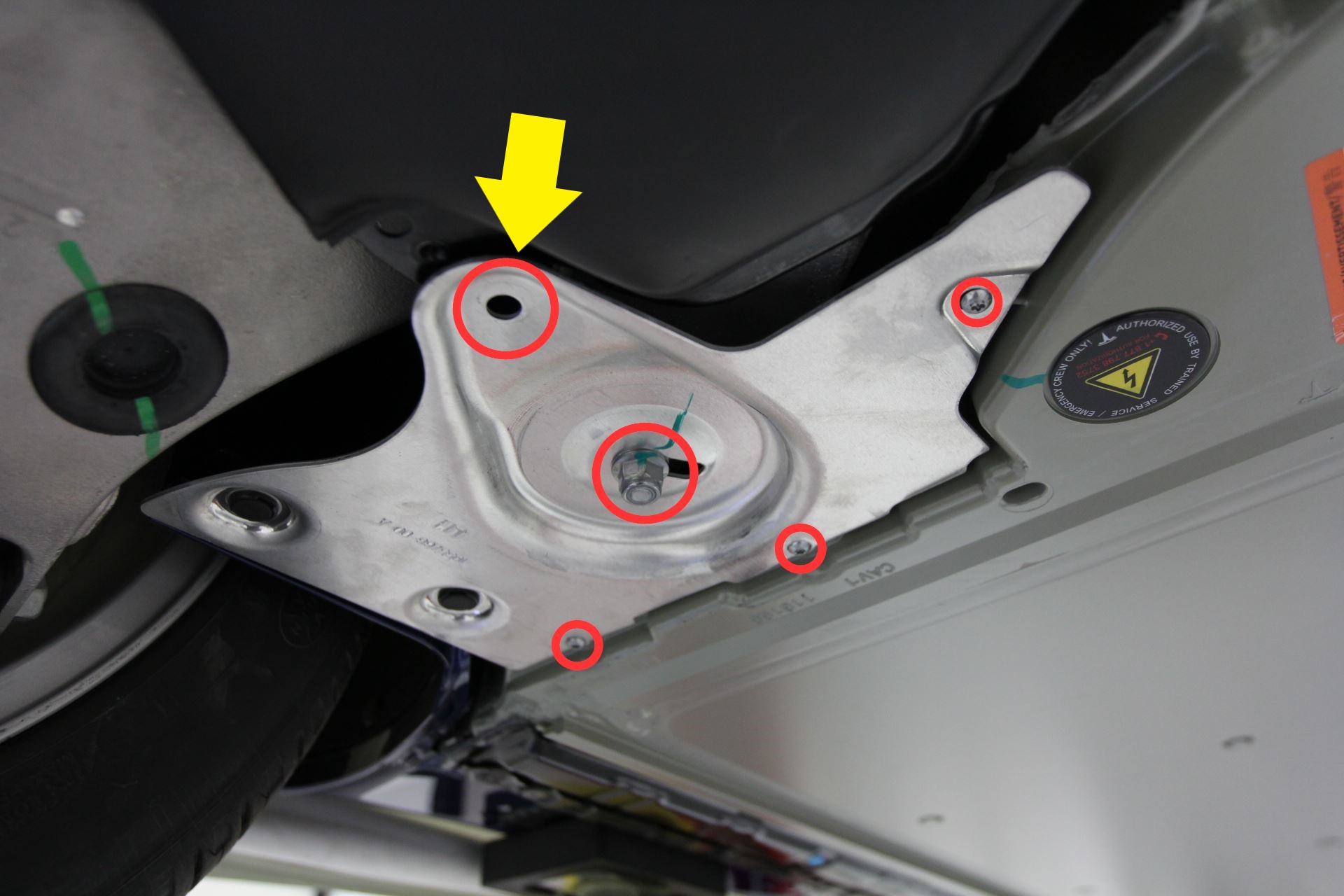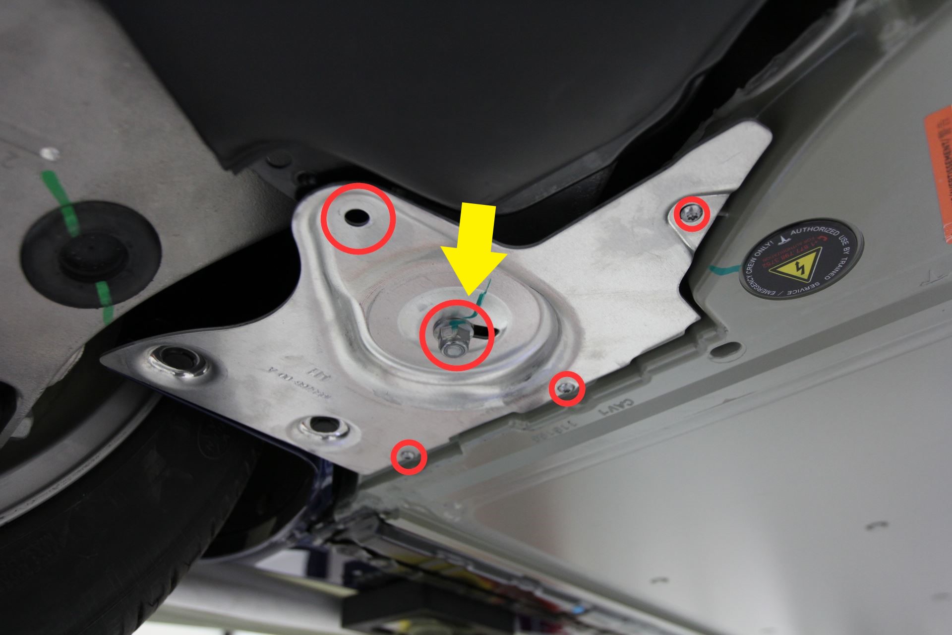 - Install the bolt that attaches the LH shear plate to the vehicle (torque 4 Nm).