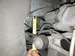 Measure the gap between the rear subframe supports and the vehicle body.