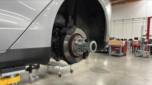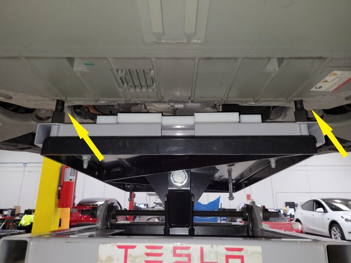 - Position the subframe lifting tool underneath the rear subframe.