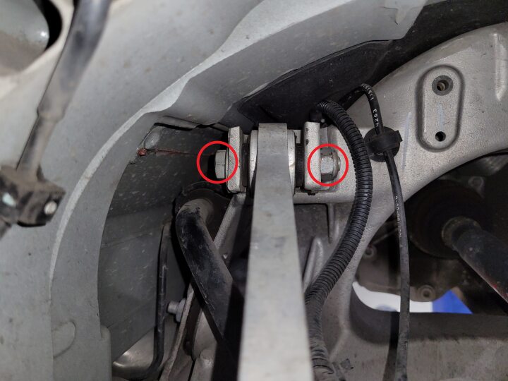 - Remove the nut and bolt that attach the LH rear toe link assembly to the subframe (torque 80 Nm).