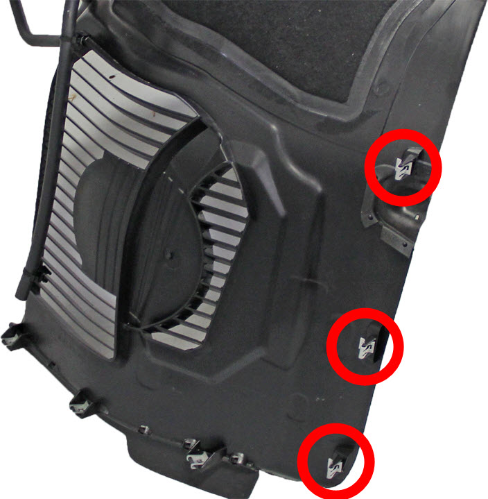 - Release the push clips (x7) that secure the arch liner.