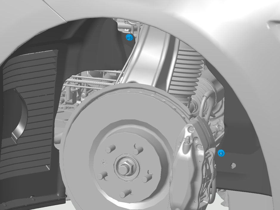- Release the fasteners (x3) that secure the front aero shield to the arch liner (torque 4 Nm).