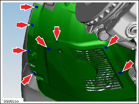 - Remove bolts (x2), plastic rivet (x1) securing wheel arch liner to undershield and front diffuser panel (torque 3 Nm).