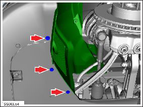 Remove plastic rivets (x4), nut (x1) securing lower wheel arch liner to upper wheel arch liner and chassis (torque 3 Nm).