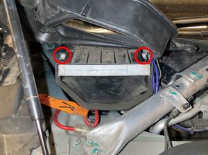 - Install the front HVAC filter housing and secure the tabs (x2).