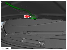 - Release the clip that secures the washer jet to the hood. Remove the washer jet from the hood.