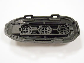 NotePlace the shortest button in the front hole, the tallest button in the middle hole, and the medium-length button in the rear hole.NoteIf a button does not sit flush with the internal structure, it is in the wrong position.