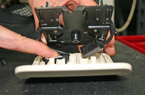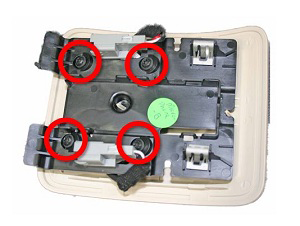 - Release the screws (x4) that secure the microphone bracket to the overhead console.