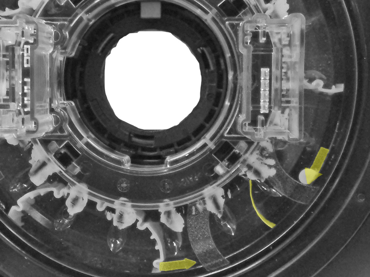 - Carefully rock the controller module 2-3 degrees back and forth to break the bond between the module and the steering column.