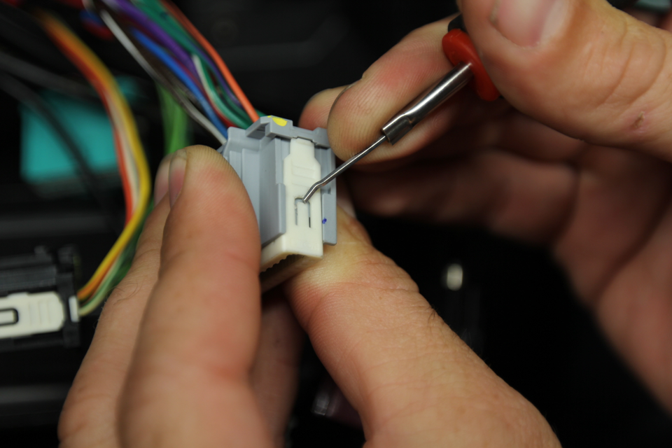 from the Pin Drag Kit into the release hole for terminal 11 of gray connector