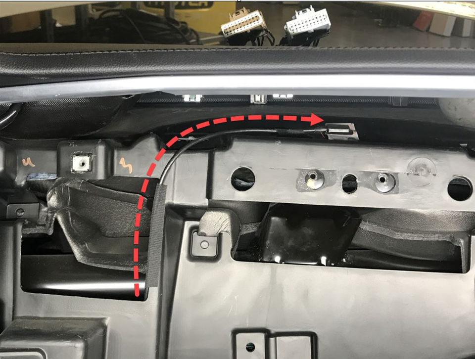 Install a new Bluetooth antenna on top of the IP carrier and route the wire through the LH inner vent opening into the wire harness access area.