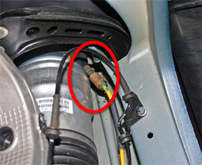 Release the fitting from the front right air spring (torque 5 Nm).