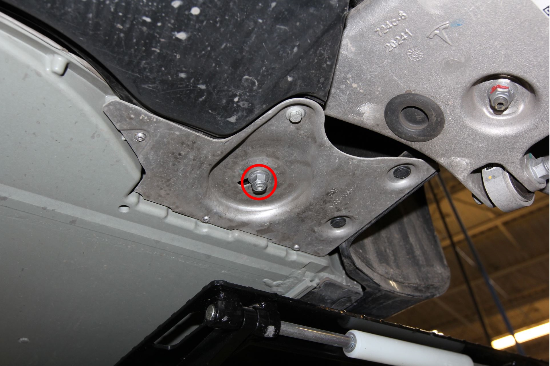 - Remove the bolt that attaches the RH shear plate to the vehicle.