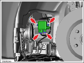 - Disconnect the harness connectors (x2) from the LH fan control module.
