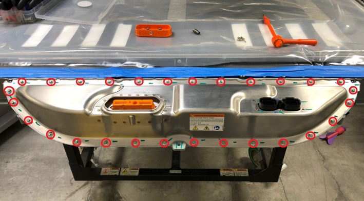 - Put a piece of tape along the rear of the HV battery to prevent accidental removal of any fasteners that attach the pack cover.