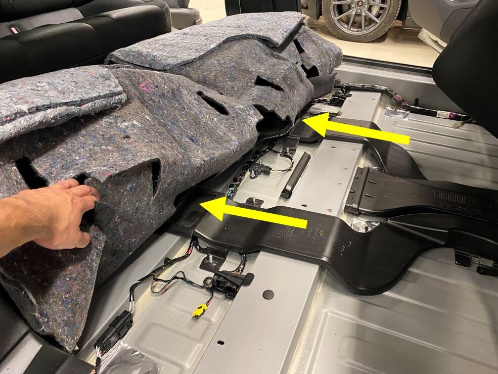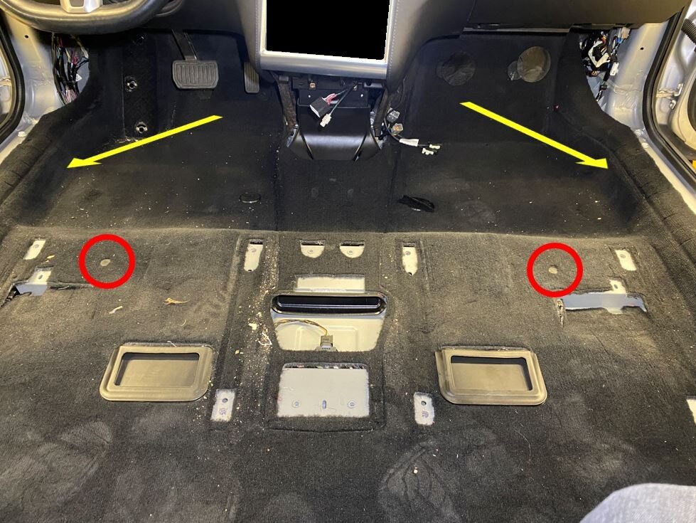 - Loosen the fir tree clips (x2) that attach the main carpet to the vehicle, and then pull back the main carpet towards the rear of the interior.