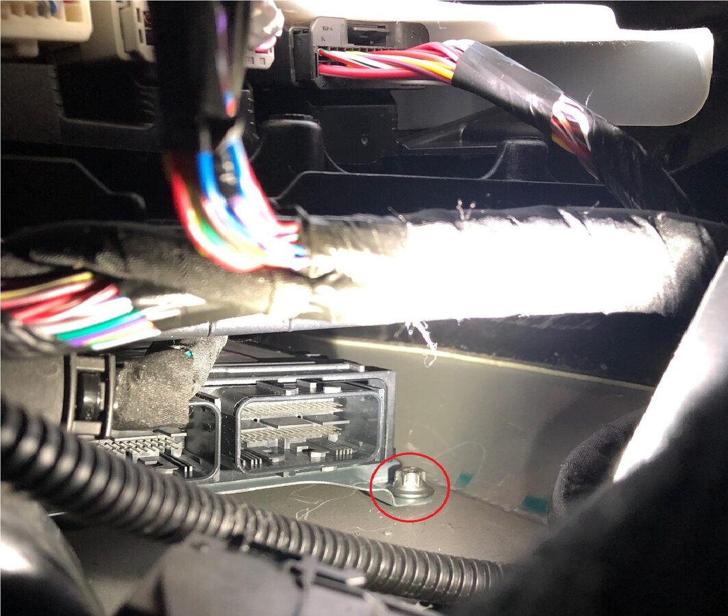 - Remove the bolt that attaches the connector side of the RCM to the body.