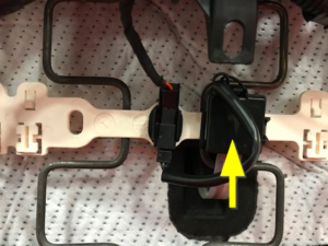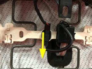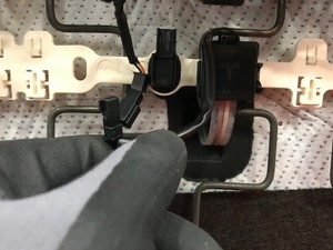Note1x connector, 1x clip, Slide connector towards front of seat bottom to secure connector to clip