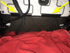 Note1x connector, 1x clip, Slide connector towards back of seat bottom to release connector from clip