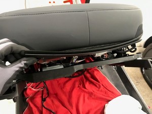 NoteInsert the rear of the seat cushion to seat bottom frame and then lower the rest on the seat cushion to the seat bottom frame, Ensure wiring harness are routed through the back of seat frame