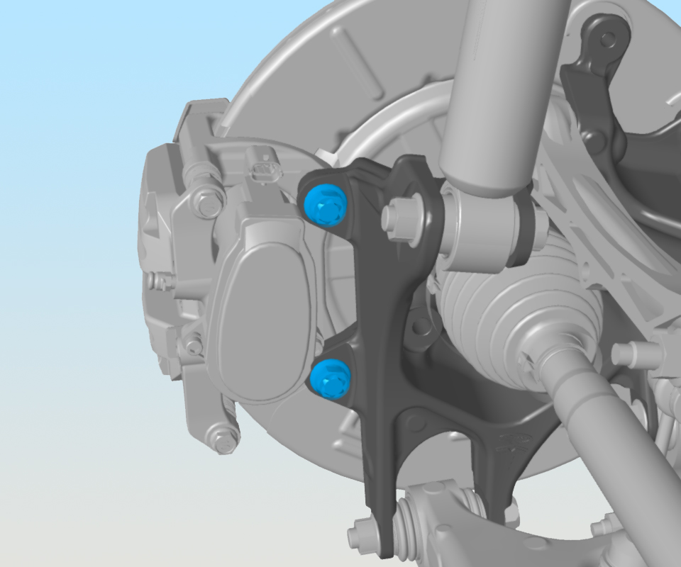 - Remove the bolts (x2) that attach the caliper to the bracket (torque 120 Nm). Remove the caliper.