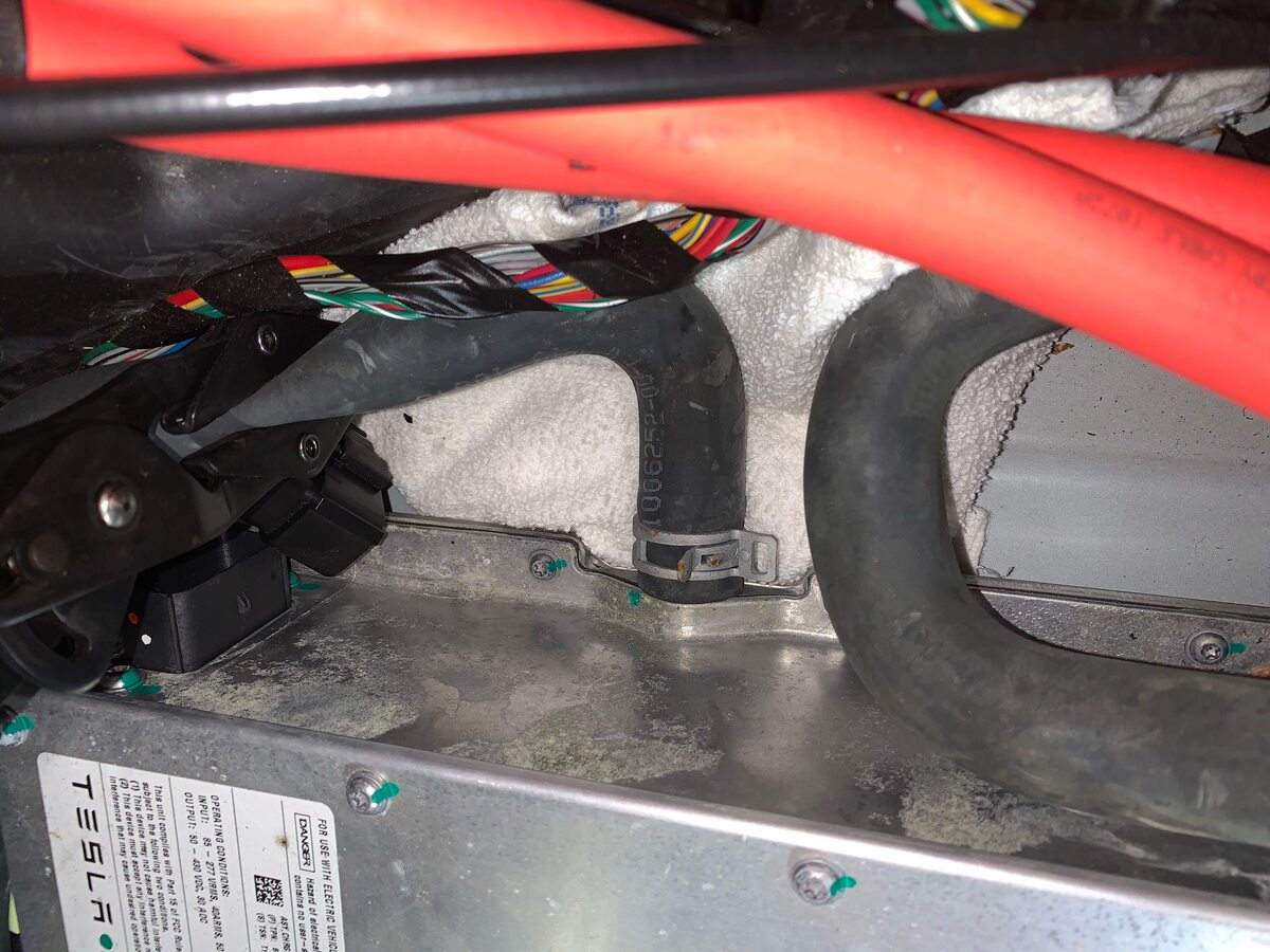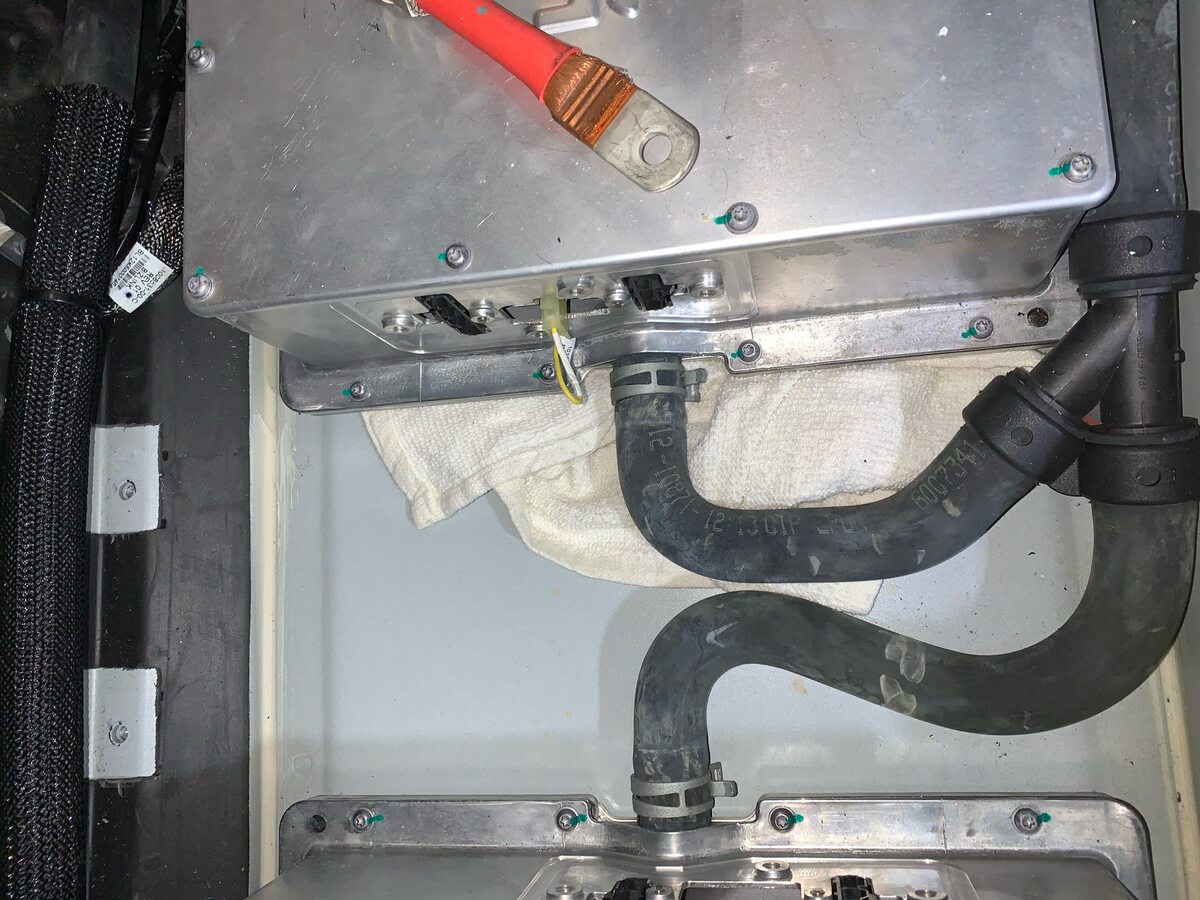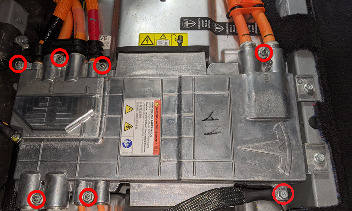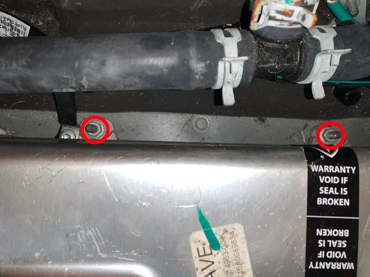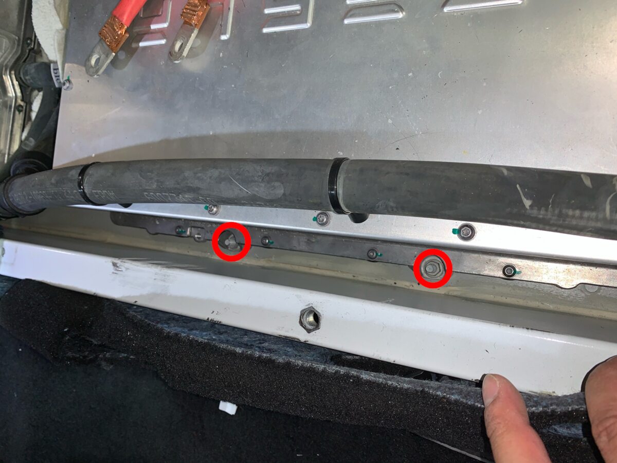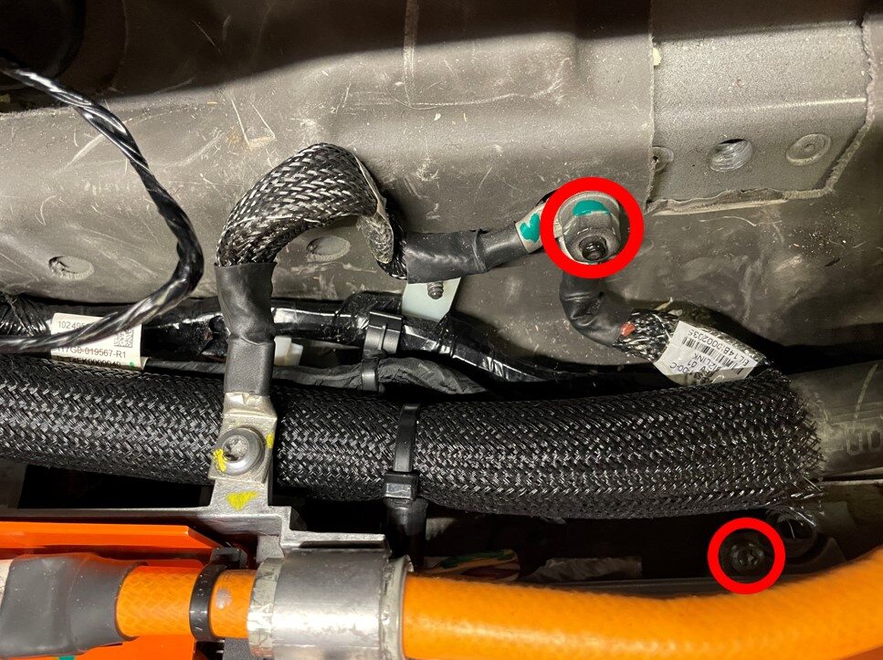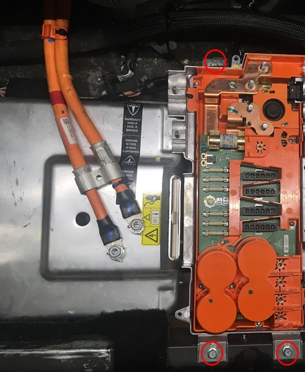NoteMove the hose to expose the HV junction box bolts.
