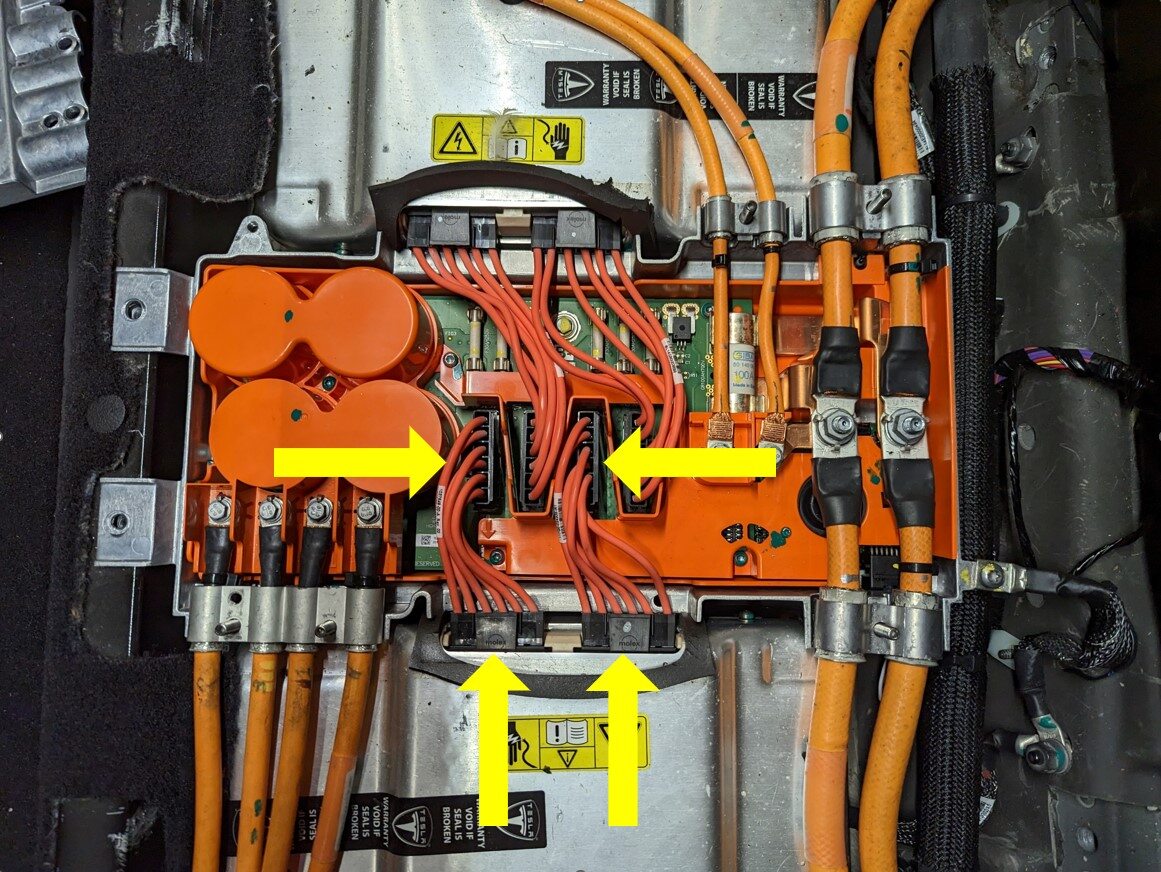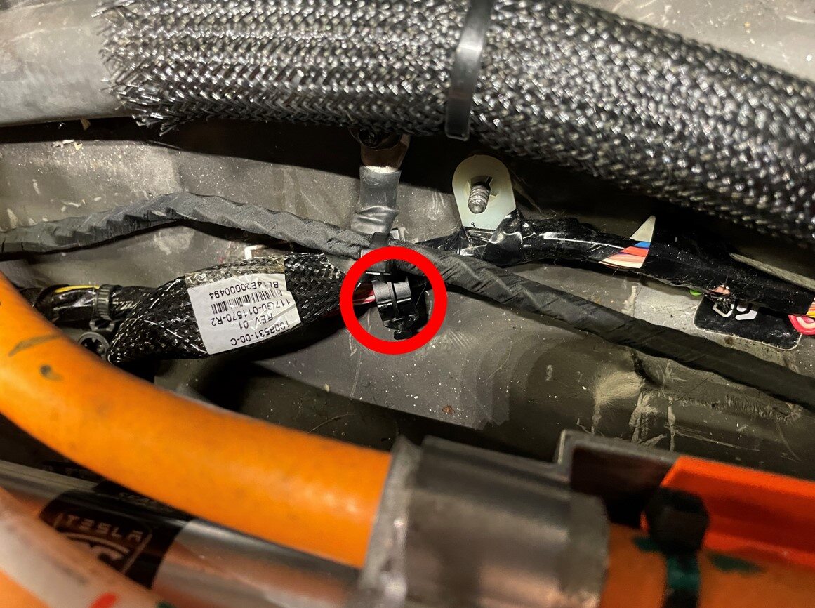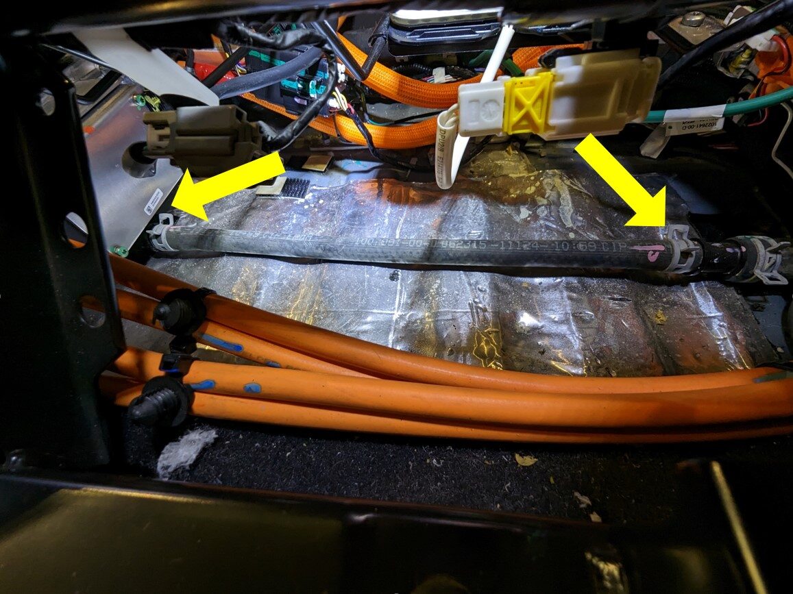- Remove the clips (x4) that attach the slave charger LV harness, remove the LV harness and discard it.