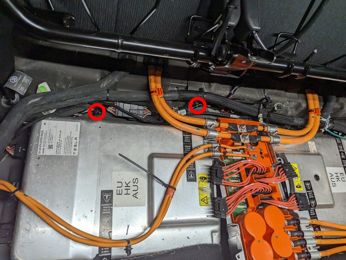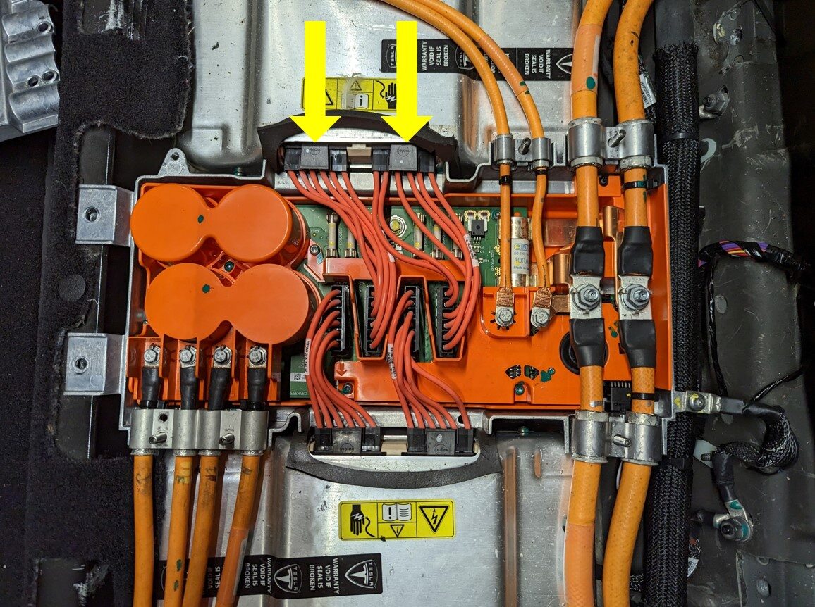 - Disconnect the master charger to junction box HV cable connectors (x2).