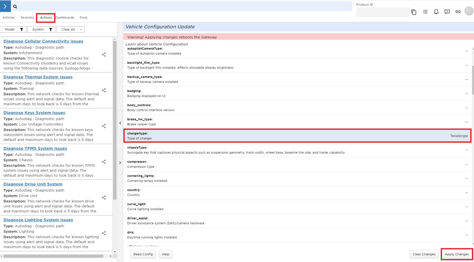 NoteIn Toolbox, navigate to Tools > Vehicle Configuration > Chargertype, and then change the configuration to "TeslaSingle". Click Apply Changes and wait for the MCU to reboot.