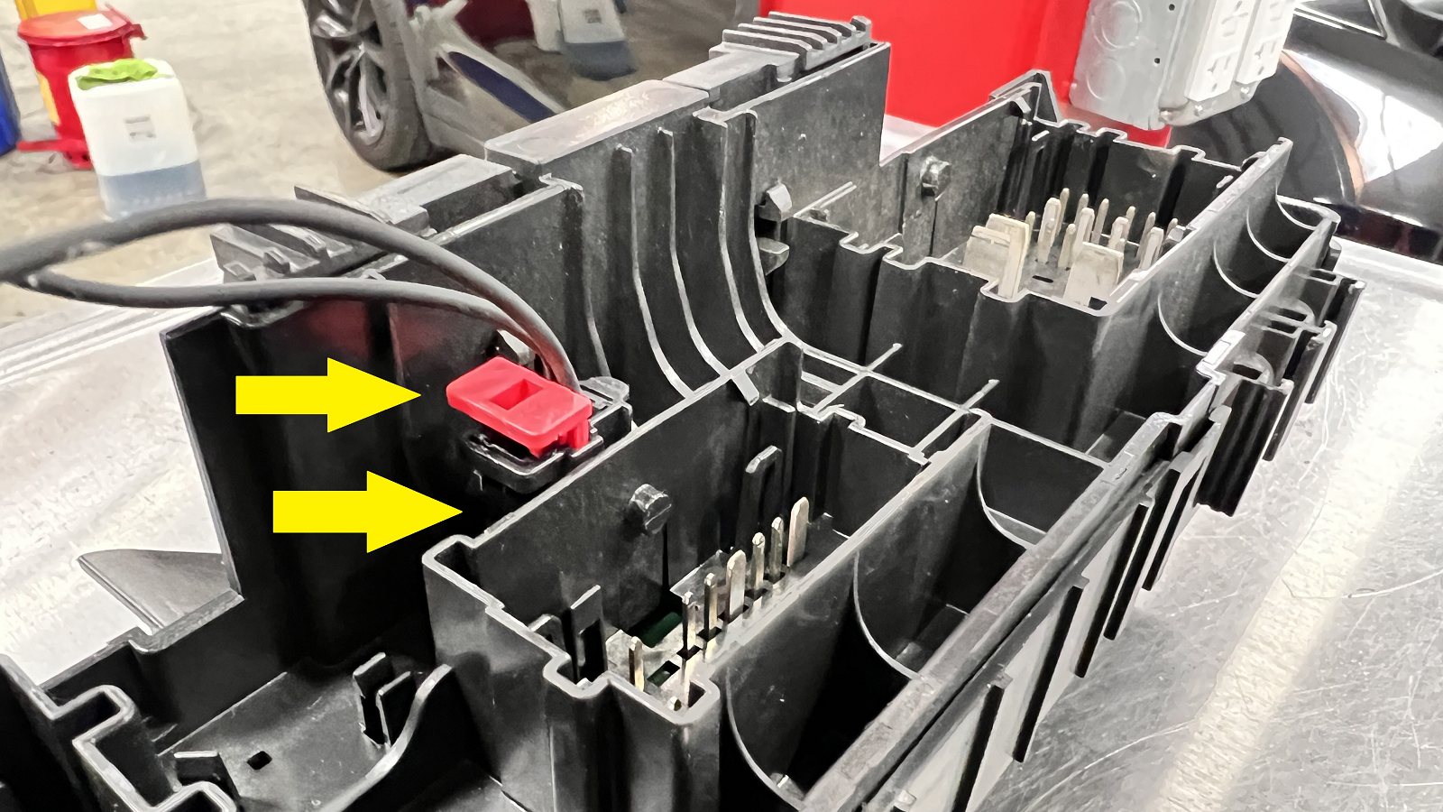 - On the new (replacement) fuse box, connect the pyro fuse signal connector.