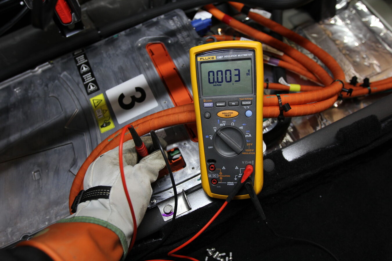 - Put on HV insulating gloves and leather over gloves
