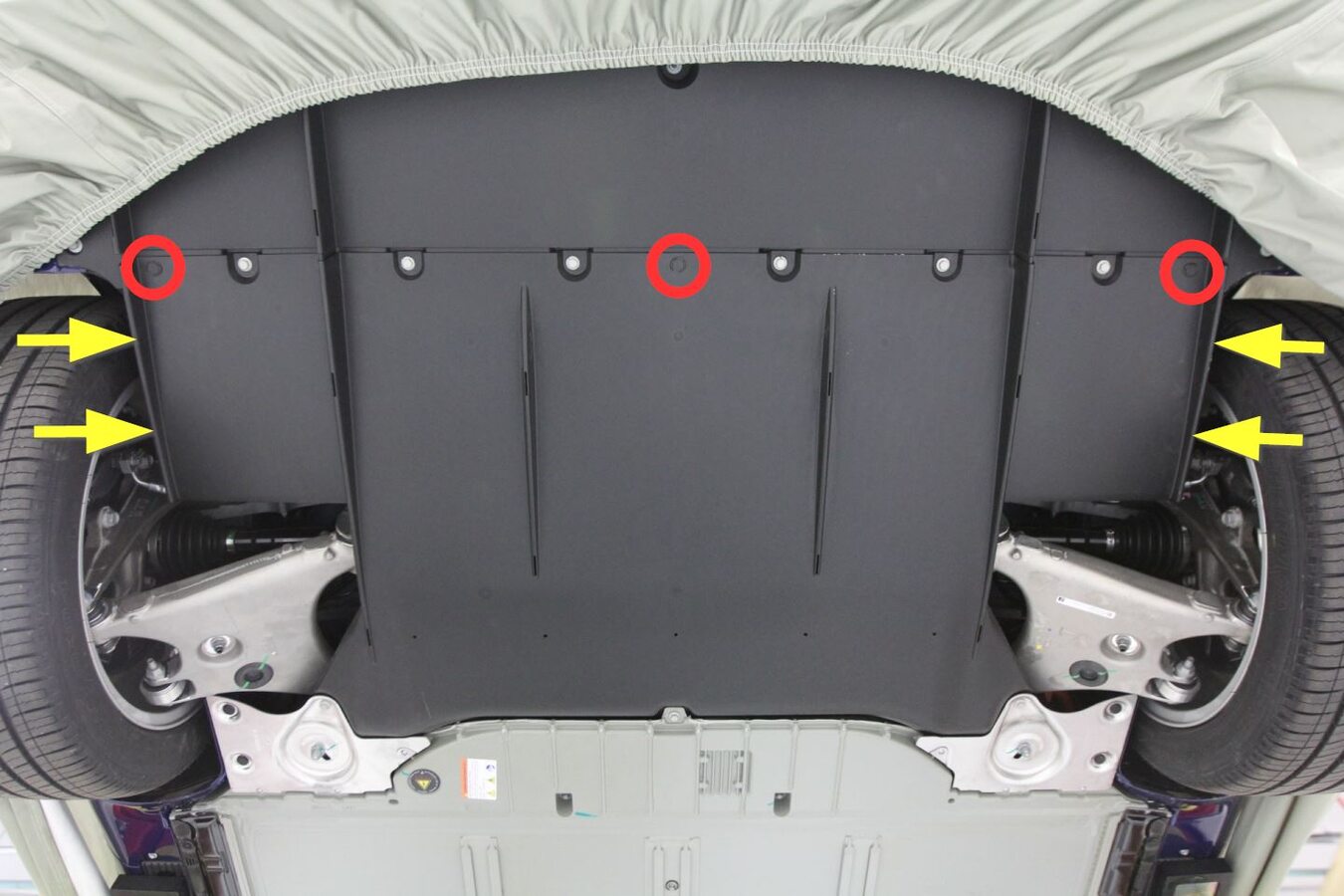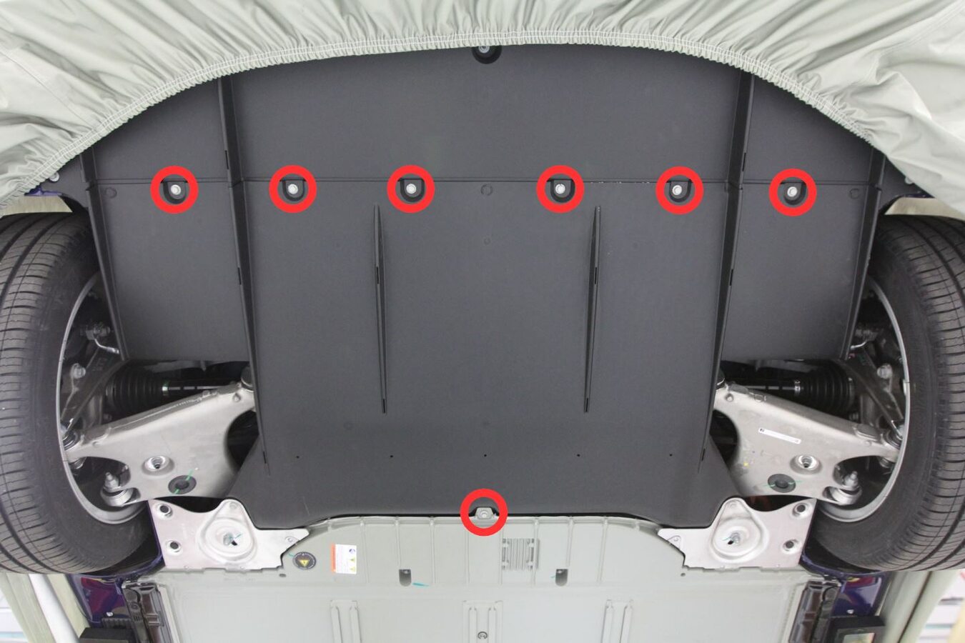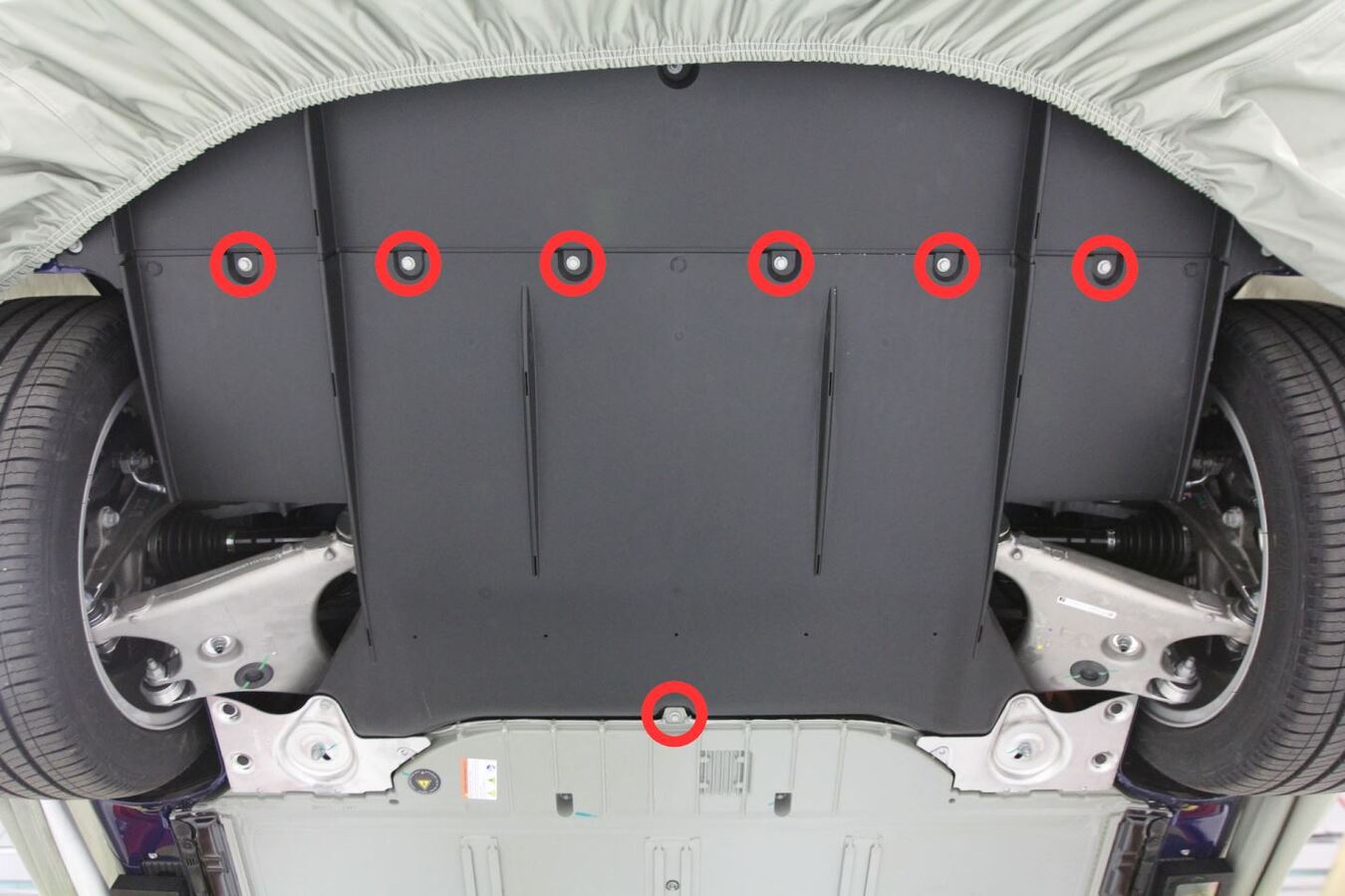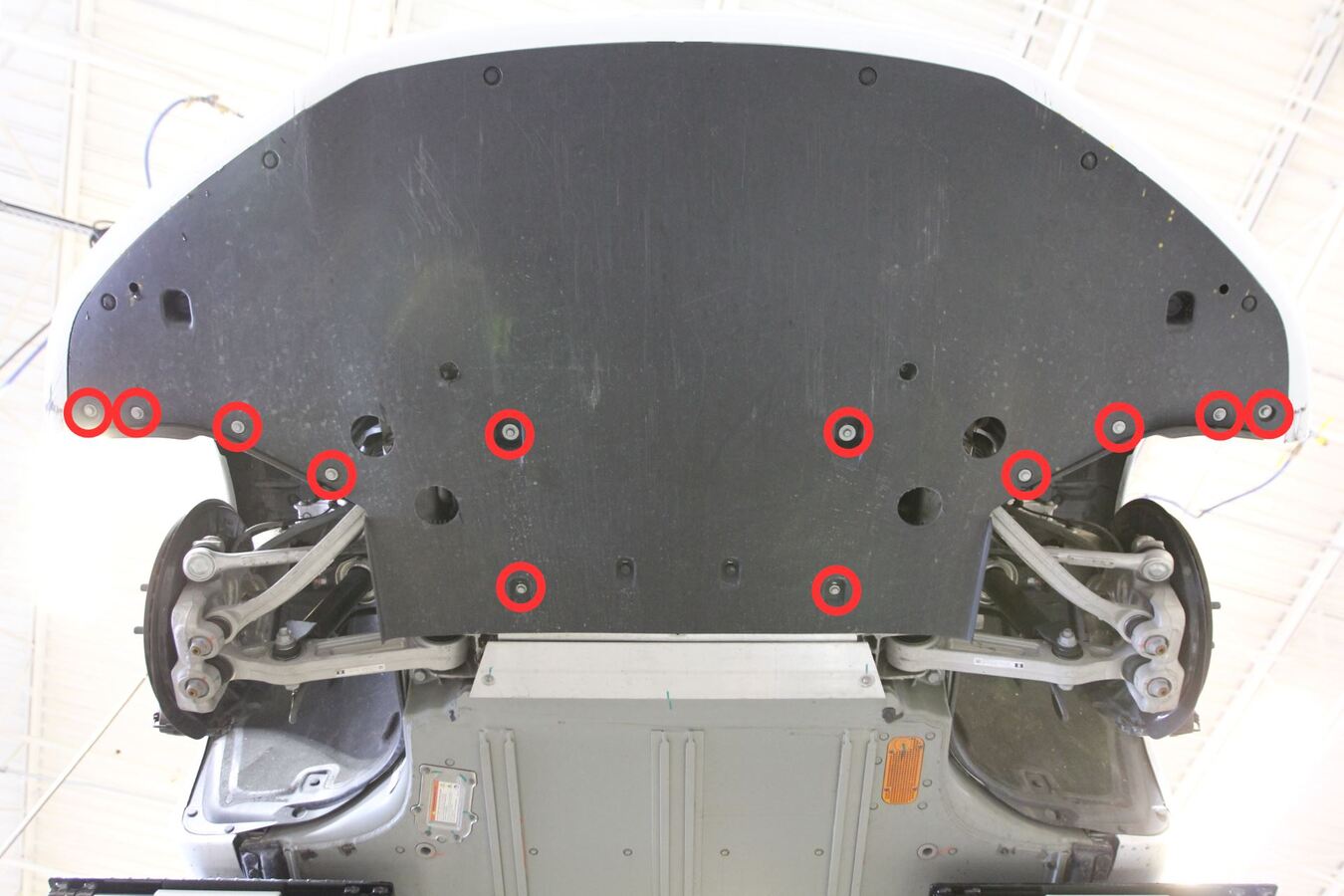 Install bolts securing mid aero shield