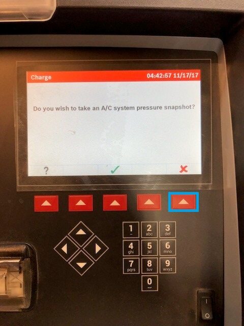 Note(Touch time only)30 minute vacuum, 10 minute leak test. Ensure quick connects are fully engaged, turn the connector dials clockwise to fully connect to A/C service ports