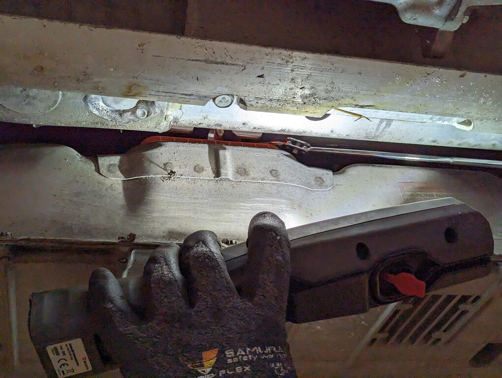 Note1x nyloc nut, 15mm, 35 Nm, 3x screws, T25, 6 Nm, 1x bolt, 10mm, 4 Nm, Install new nut