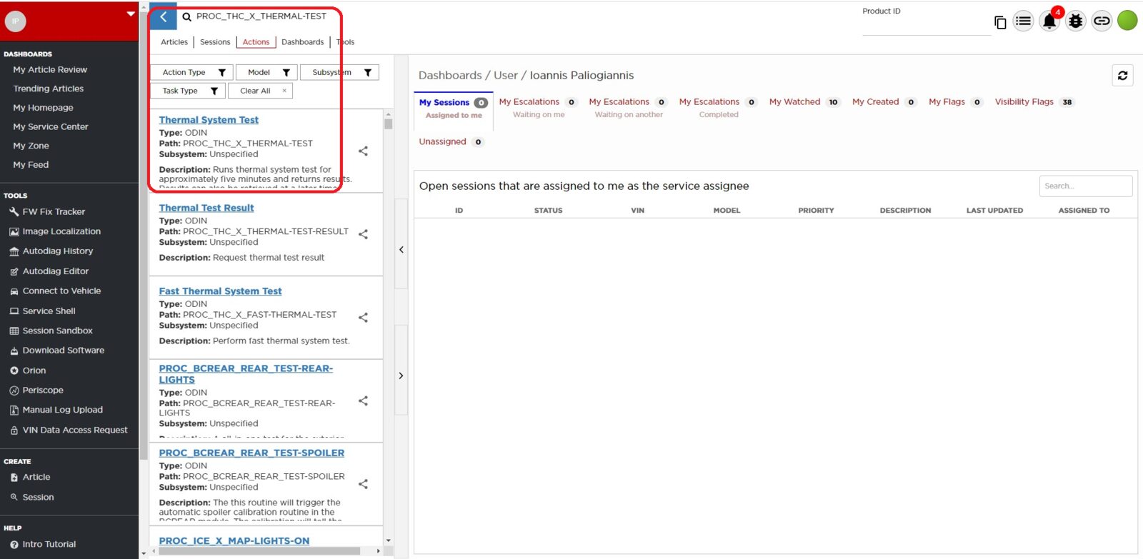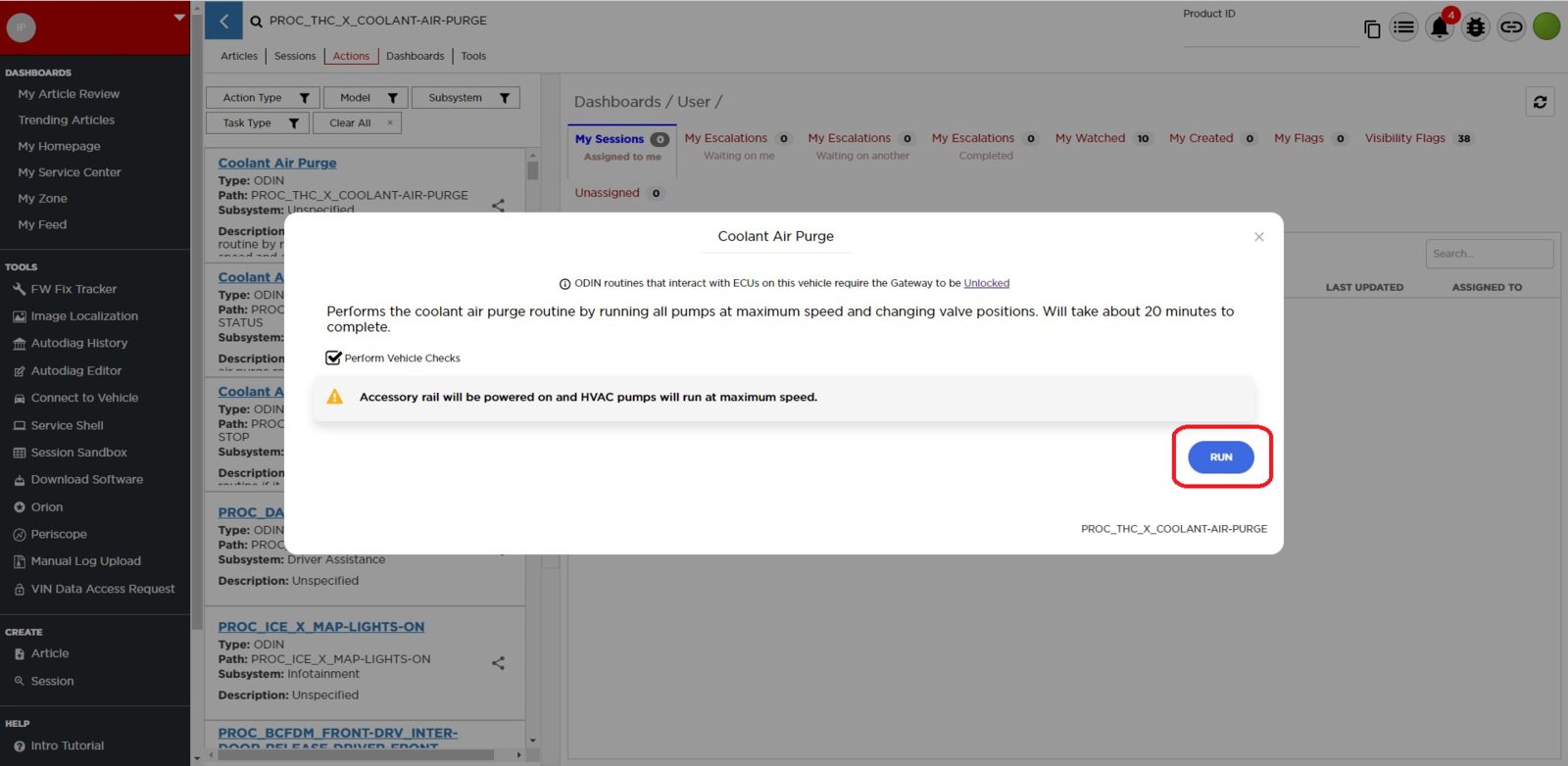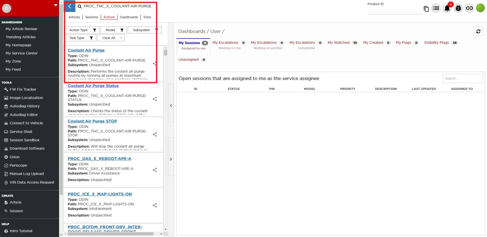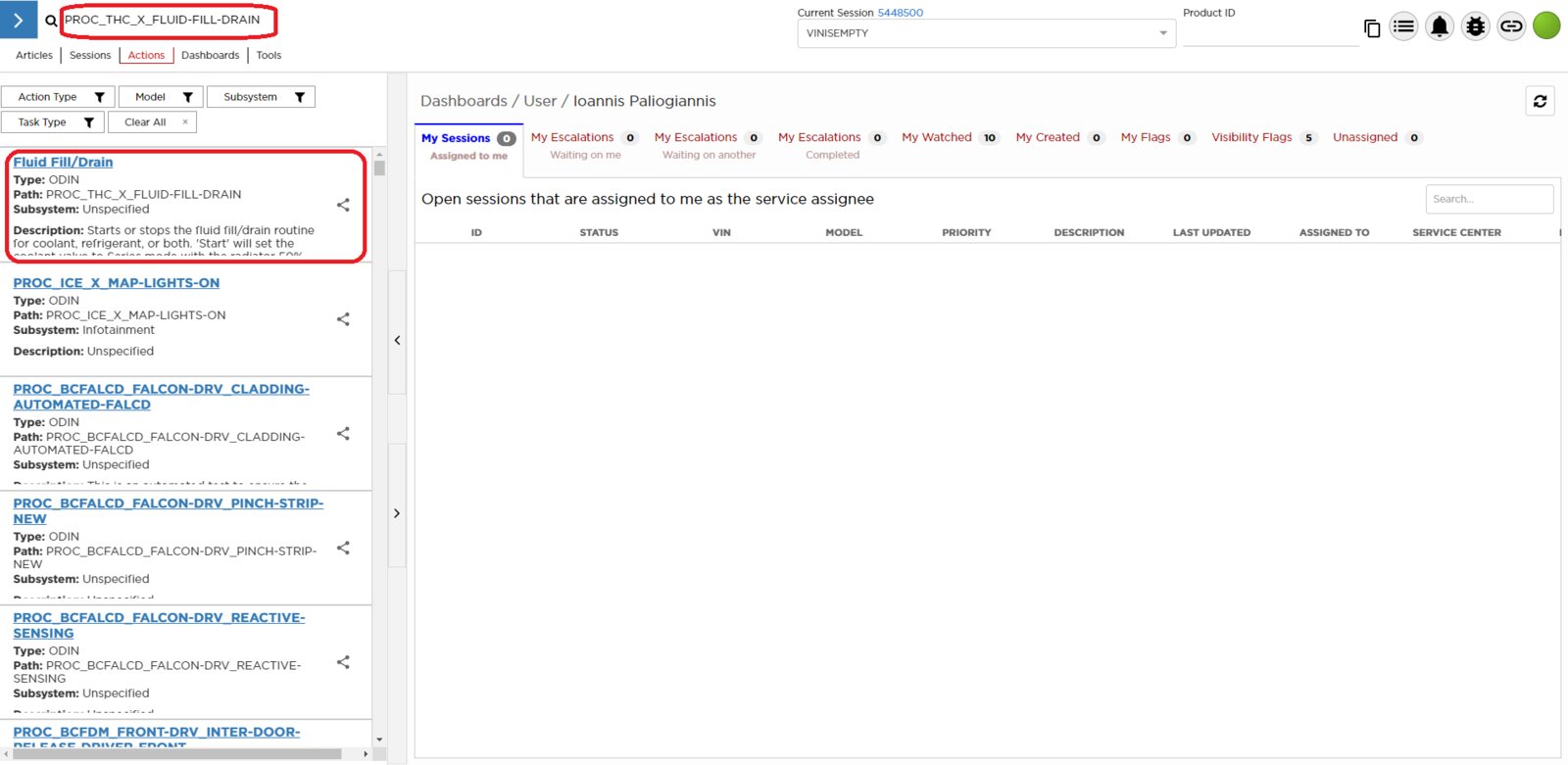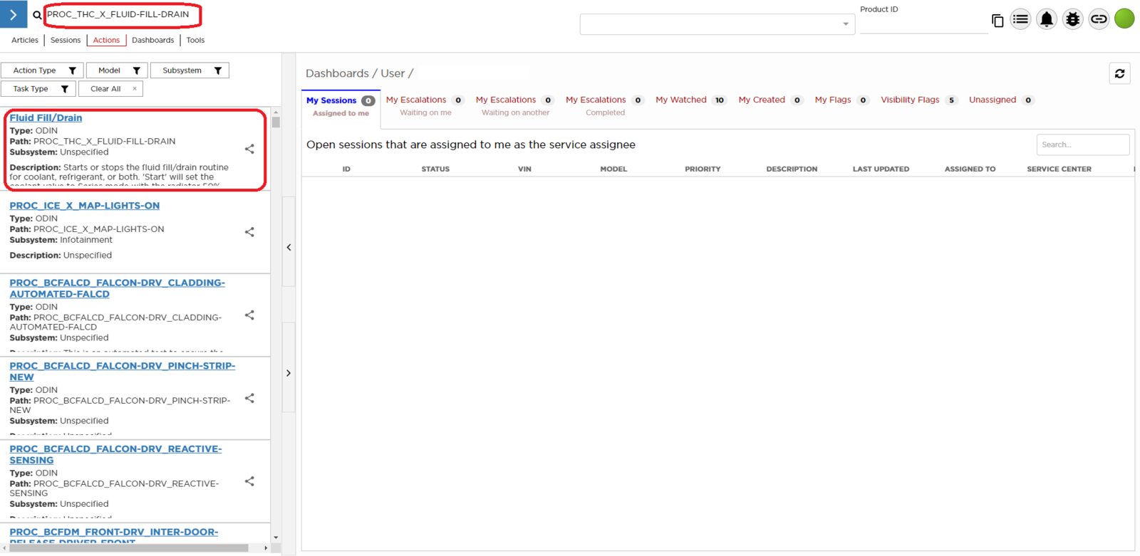 - Select ‘Actions’ tab and search for ‘PROC_THC_X_FLUID-FILL-DRAINvia Toolbox: (link)via Service Mode: Thermal ➜ Actions ➜ Stop Fluid Fill/Drain’