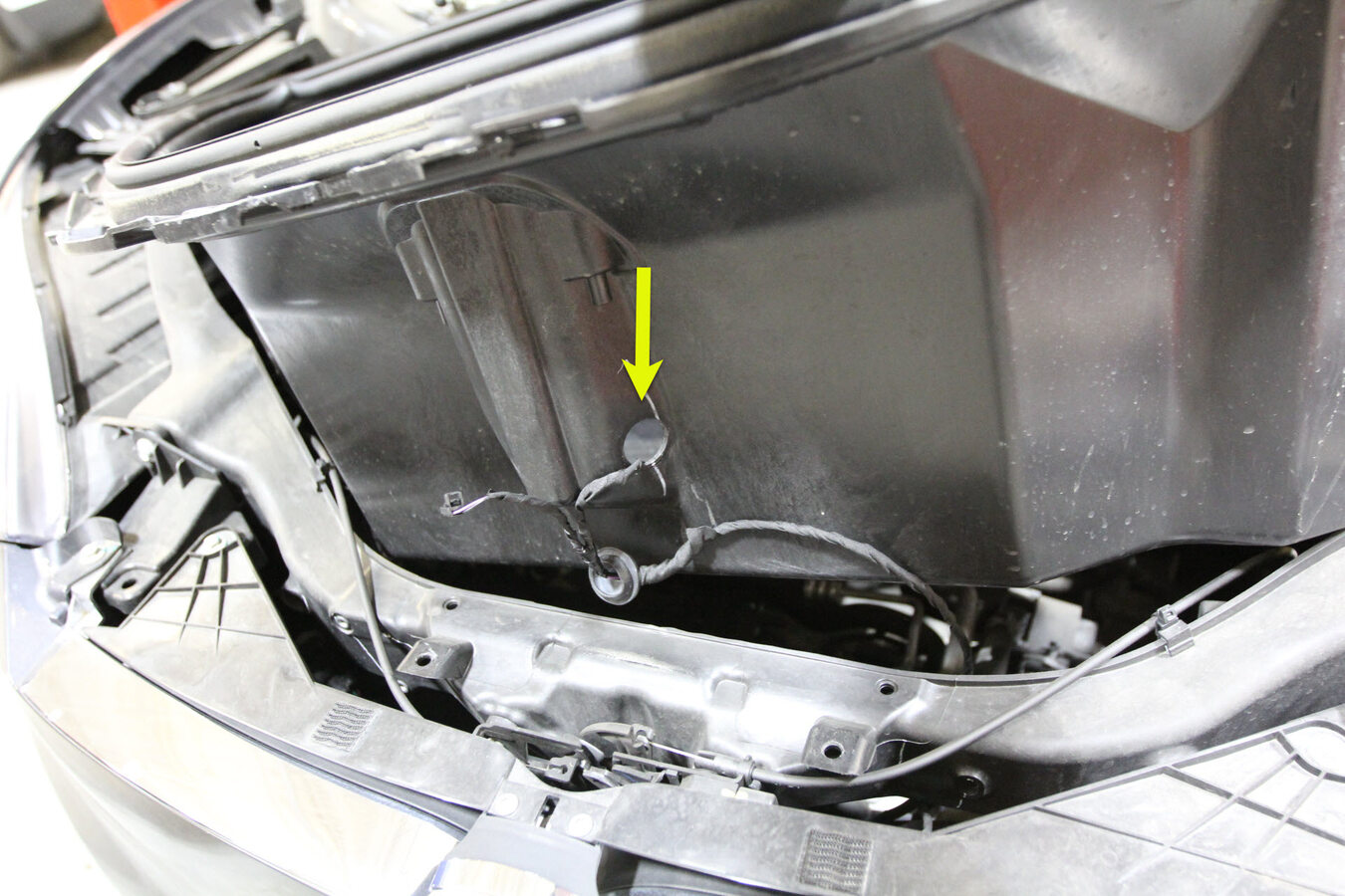 Note1x grommet, Lift the underhood storage unit appropriately to access the grommet