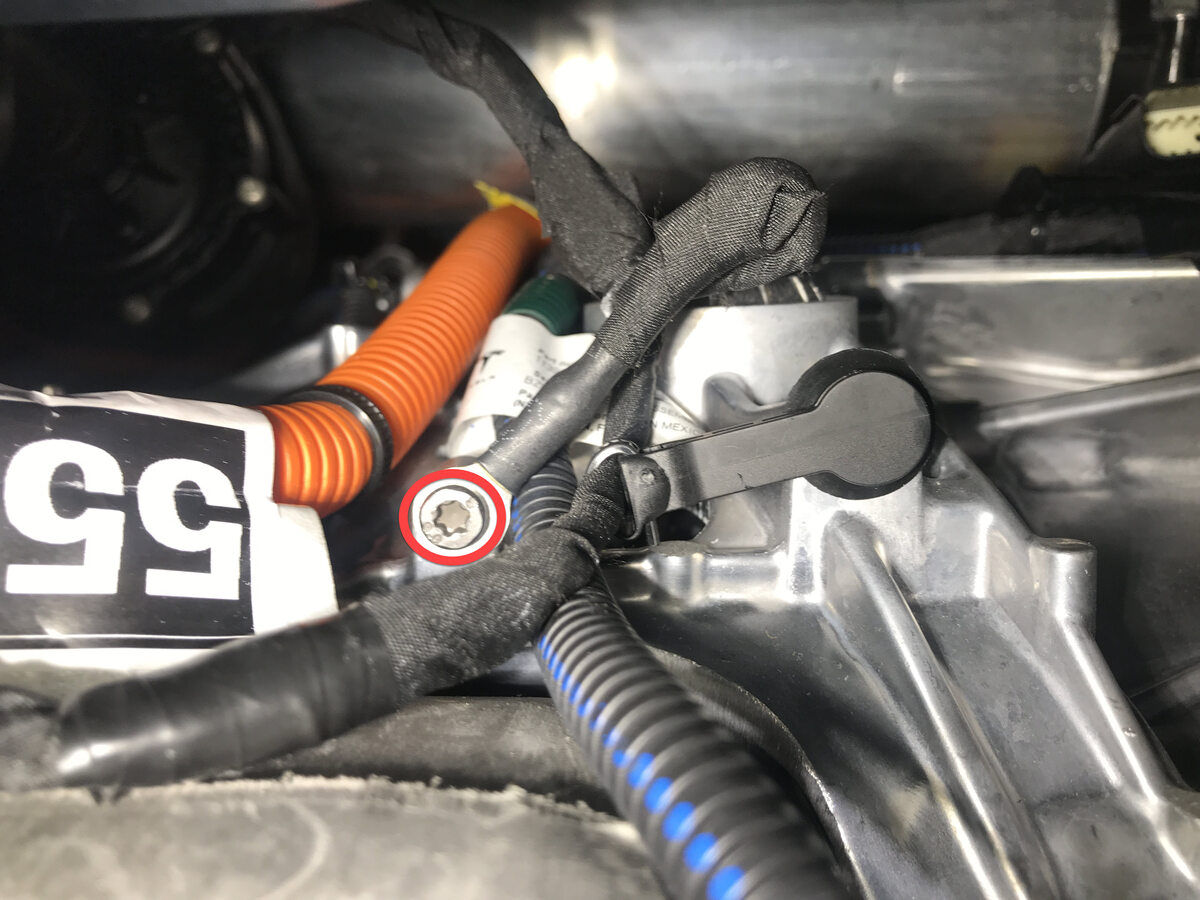 Note1x nut, 10mm, 5 Nm, 1x connector, Wait at least 2 minutes before disconnecting modules or HV components