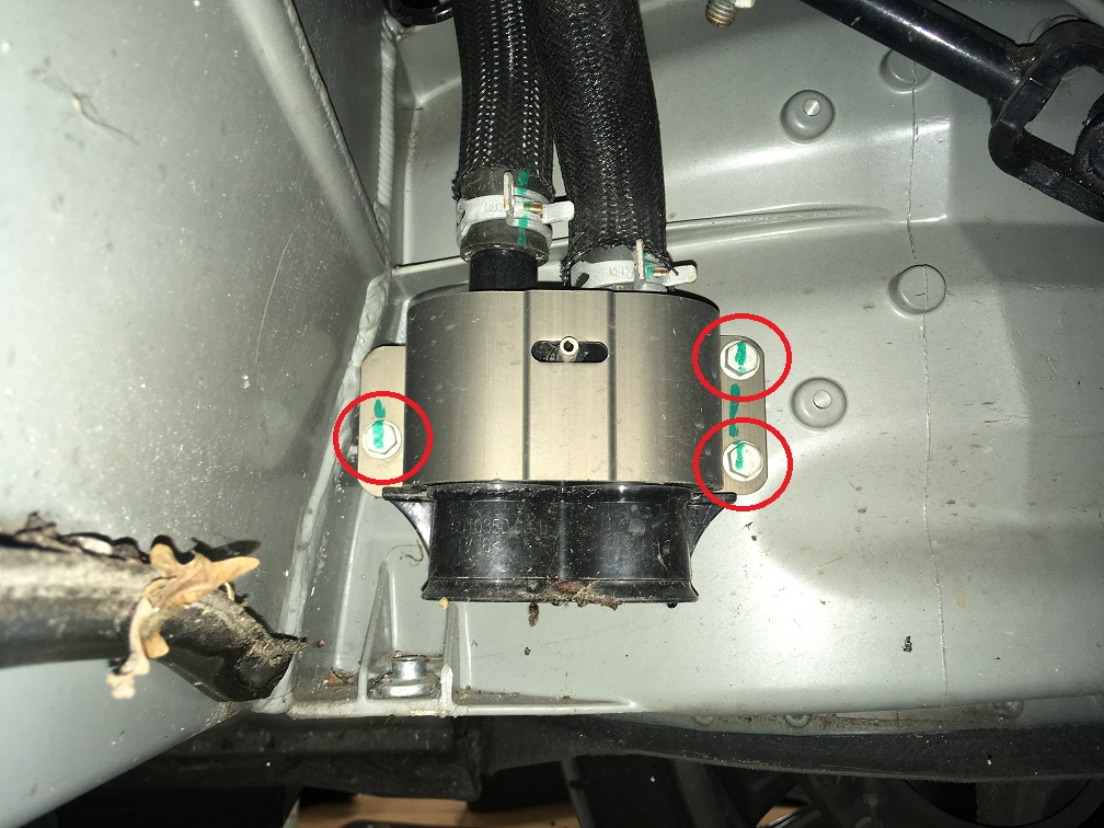 - Remove the bolts (x3) that attach the coolant hose rapid mate to the body (torque 8 Nm).