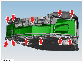 - Remove the bolts (x8) that secure the active center louver to the carrier (torque 11 Nm).