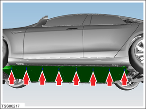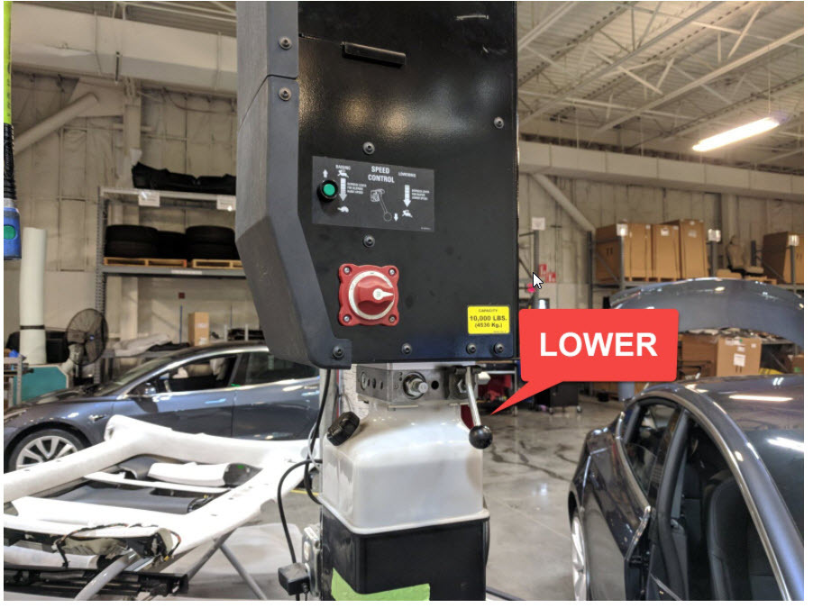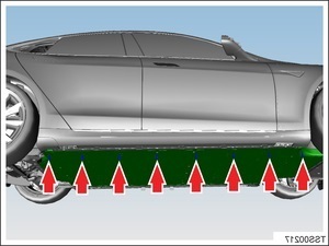 NoteLower rack arms fully and remove them from under vehicle, Remove air suspension from "Jack Mode" via Controls > Service > '' JACK MODE''