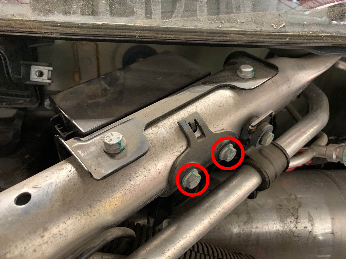 Remove bolts securing front HVAC filter