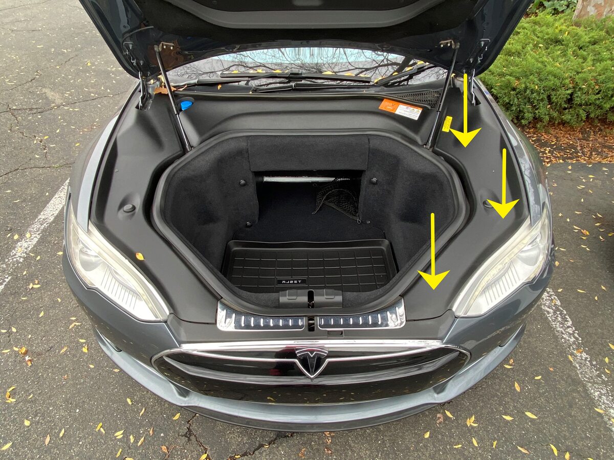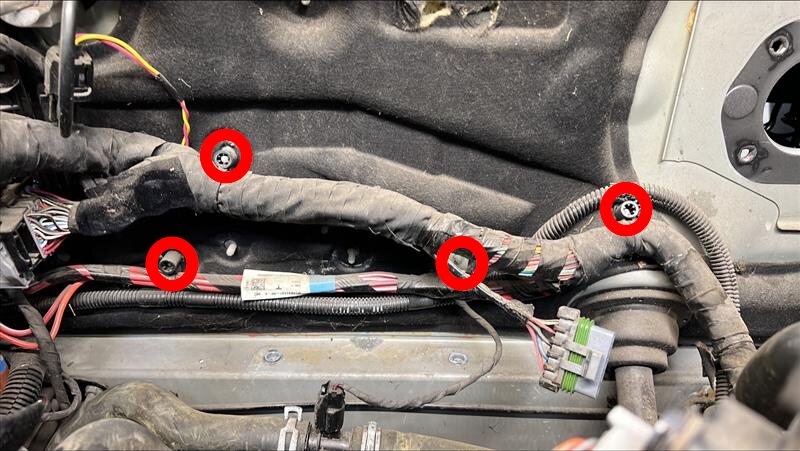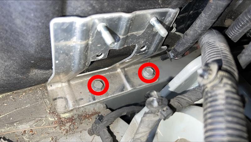 Remove rear bolts securing underhood
