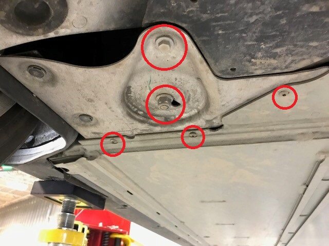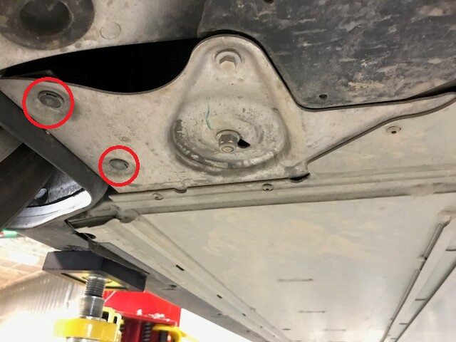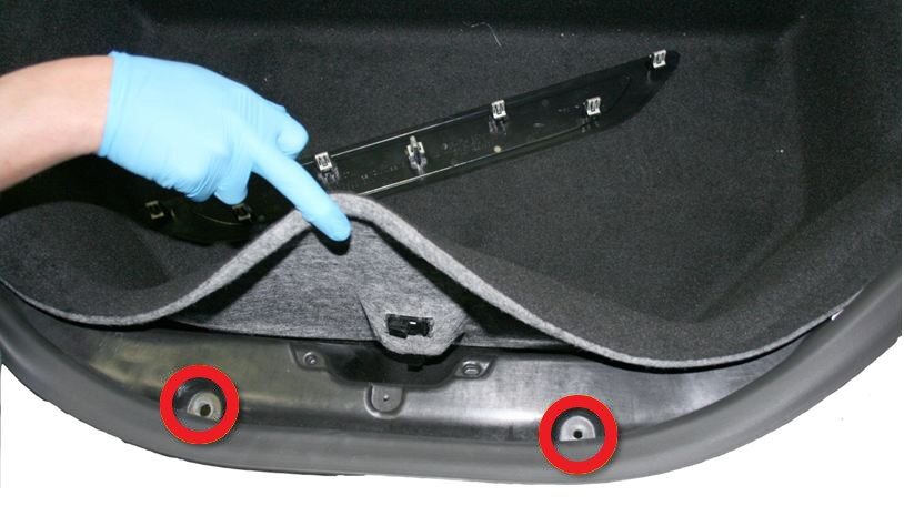 Note2x bolts, 13mm, 4 Nm, Peel back carpet for access