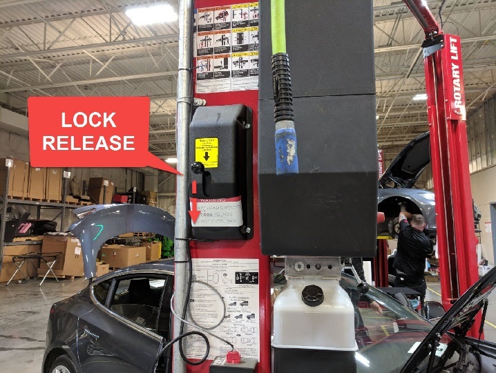 NoteSet vehicle to comfortable working height, Make sure there's an audible click of locks on both sides before lowering, otherwise vehicle may tilt to side, Always lower lift arms onto locks after raising vehicle