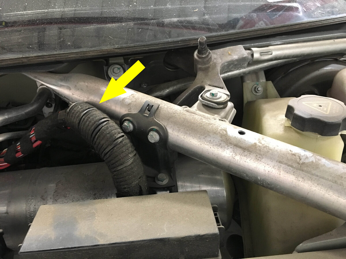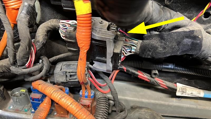 Note2x connectors, Push wiring harness grommet through underhood storage unit