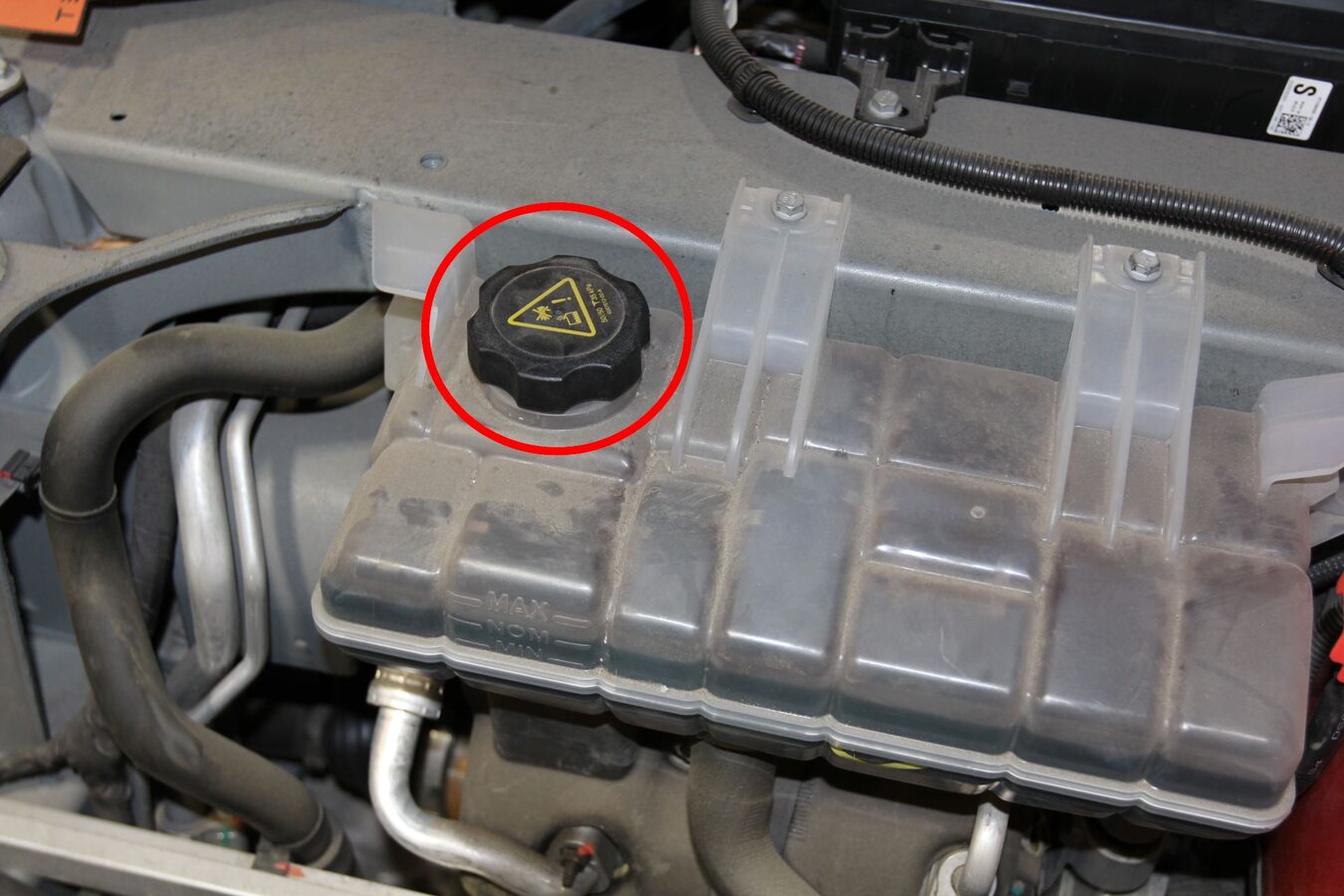 - Remove the coolant reservoir cap