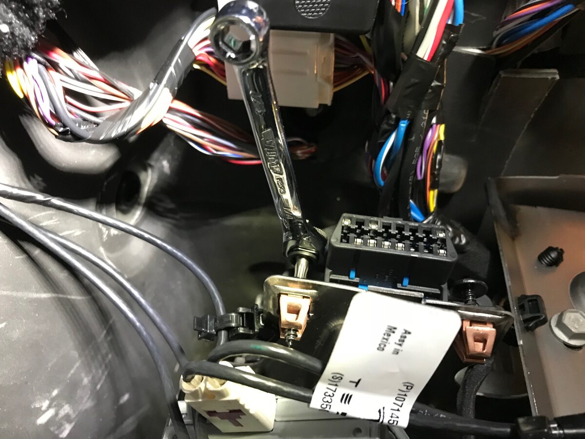 Remove OBD II connector from tuner bracket