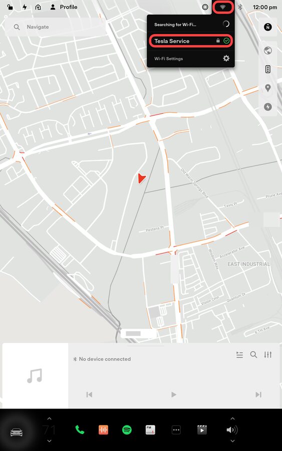 NoteConnect vehicle to WiFi or Tesla WiFi if available, Maintain WiFi connection for profile functions and firmware download