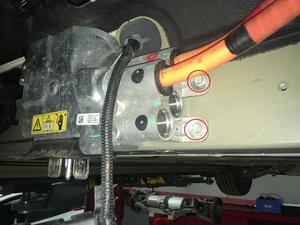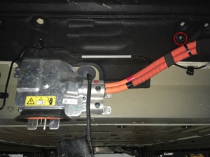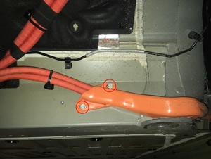 - Remove the bolts (x2) that attach the HV cable bracket to the vehicle (torque 7 Nm).